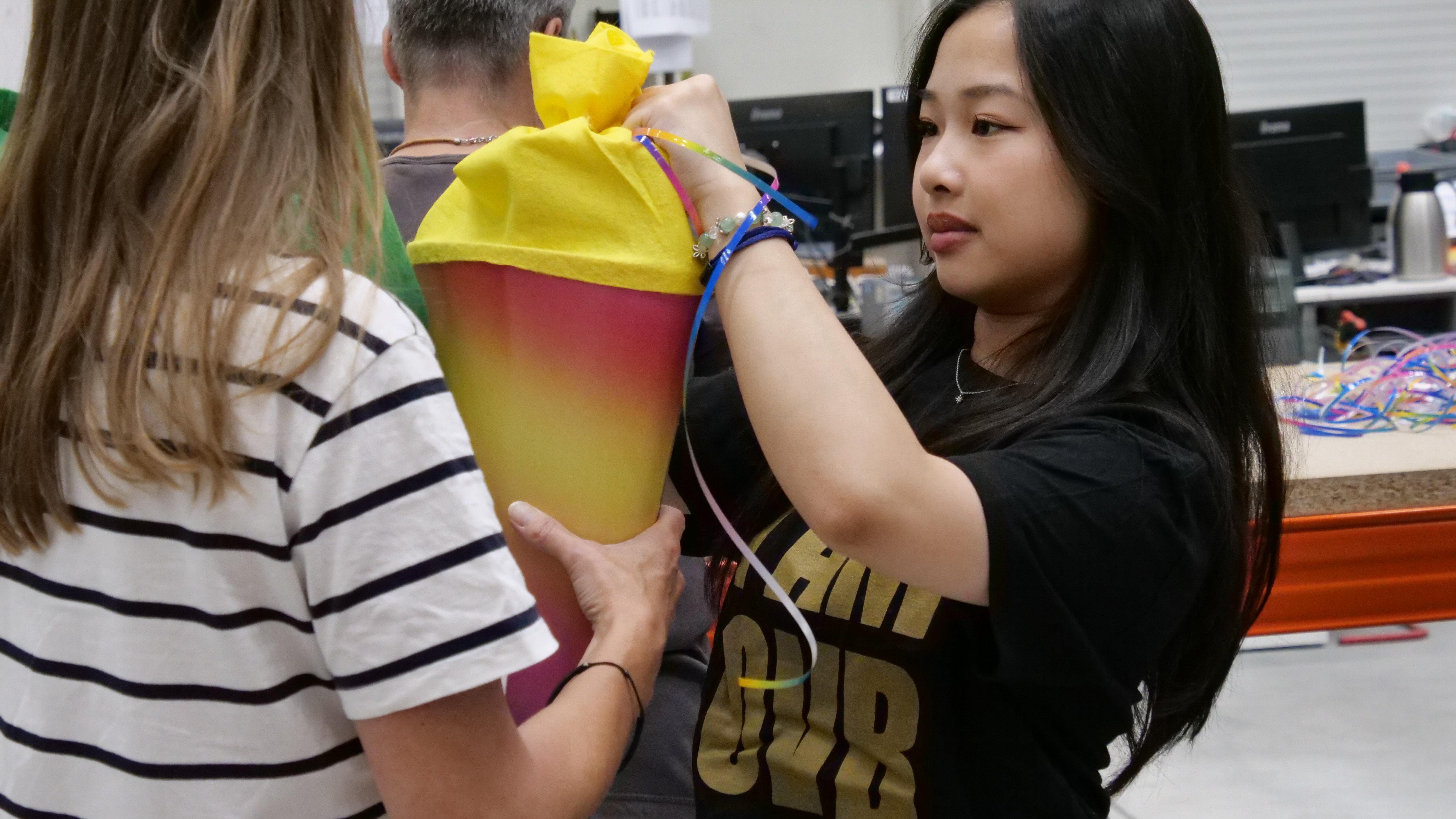 Berlin - 26. September 2024. Als OVB Landesdirektor Rolf Butschkat und seine Ehefrau Melanie von dem ambitionierten Unterstützungsaufruf für über 600 Schultüten erfuhren, war den beiden sofort klar, dass das von den Wirtschaftjunioren Berlin initiierte Projekt ein voller Erfolg werden muss. Dementsprechend unterstützte das Paar die Aktion nicht nur finanziell gemeinsam mit dem OVB Hilfswerk mit einem Betrag in Höhe von insgesamt 2.000 Euro, sondern auch als Helping Hands. So packten Rolf Butschkat, Melanie Butschkat sowie seine Mitarbeiterin, Oanh Hoang Nguyen, zusammen an, als es galt, die vielen Schultüten rechtzeitig vor dem Schulstart zu befüllen.